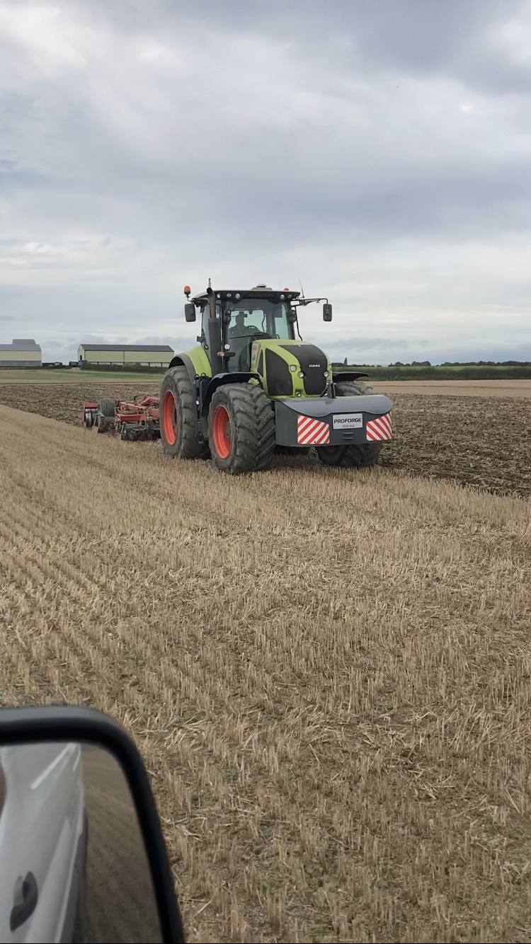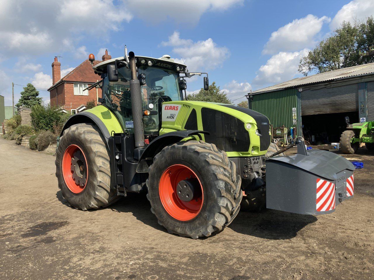 Claas Axion 950, 410 horse power, continuously variable gearbox, front linkage. 50kph road speed. Available with ballast, rear wheel weights and 1500kg front weight block.